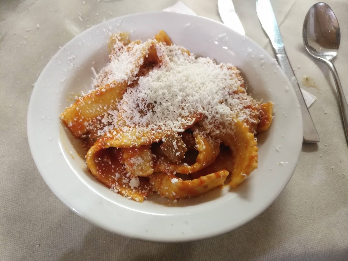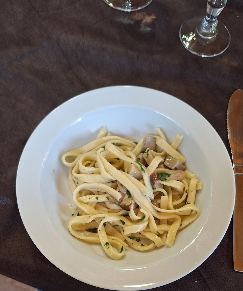 Classica Trattoria di montagna con pietanze adeguate al luogo . Pappardelle al cinghiale o misto di carni o fagioli con le cotiche , basta , andate a provarle . Simpatia dei proprietari a parte